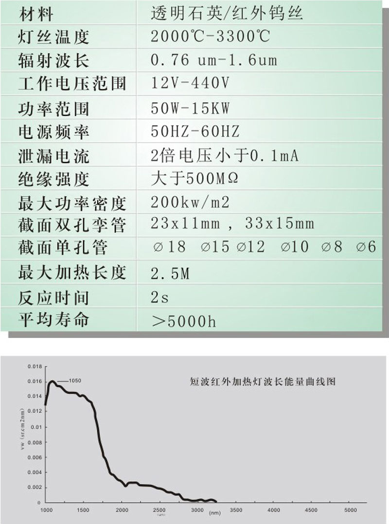 短波紅外線輻射加熱燈
